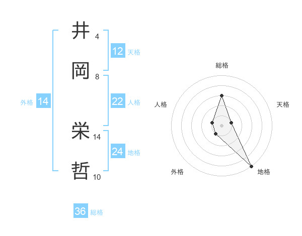 井岡 栄哲さんの天格は12画の1点!