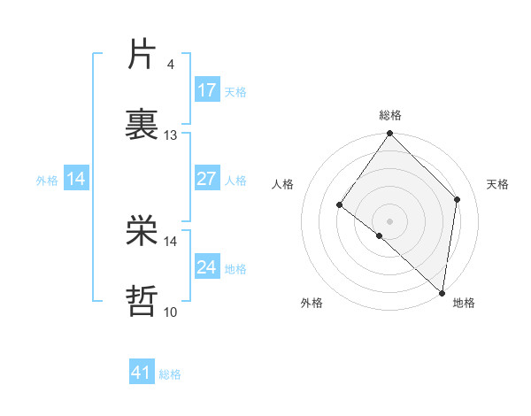 片裏 栄哲さんを姓名の画数から五運を鑑定