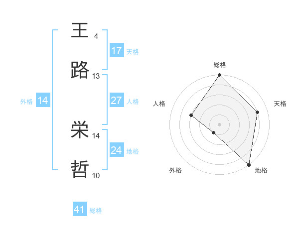 王路 栄哲さんの天格は17画の4点!