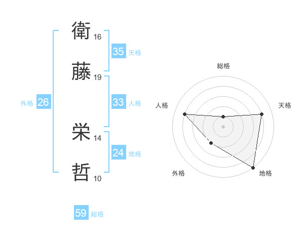 衛藤 栄哲さんの総格は59画の1点!