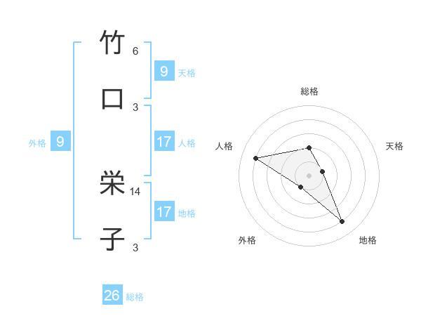 竹口 栄子さんの総格は26画の2点!