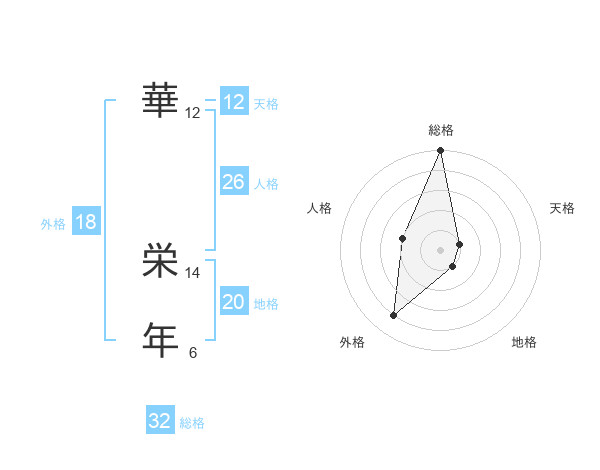 華 栄年さんの総格は32画の5点!