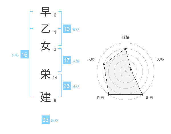早乙女 栄建さんの総格は33画の4点!