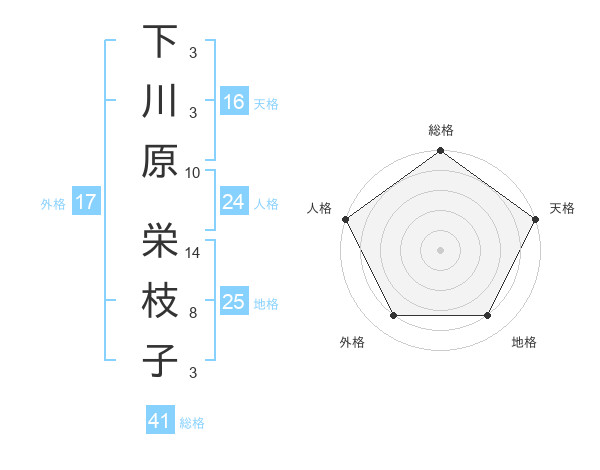 下川原 栄枝子さんの総格は41画の5点!