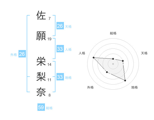 佐願 栄梨奈さんの総格は59画の1点!