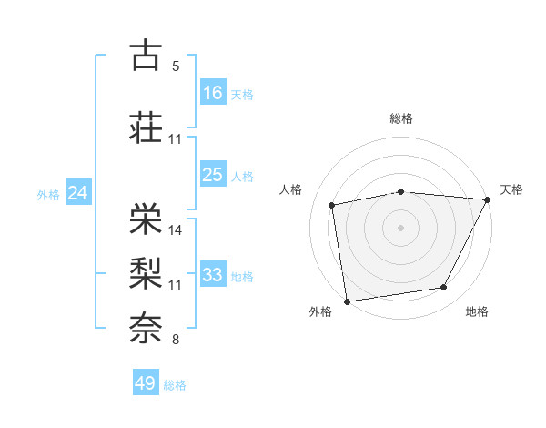 古荘 栄梨奈さんを姓名の画数から五運を鑑定