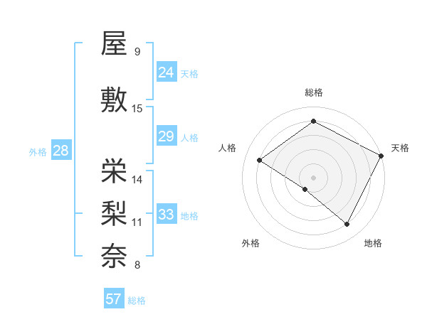 屋敷 栄梨奈さんを姓名の画数から五運を鑑定