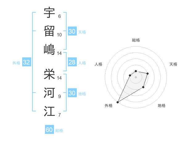 宇留嶋 栄河江さんを姓名の画数から五運を鑑定