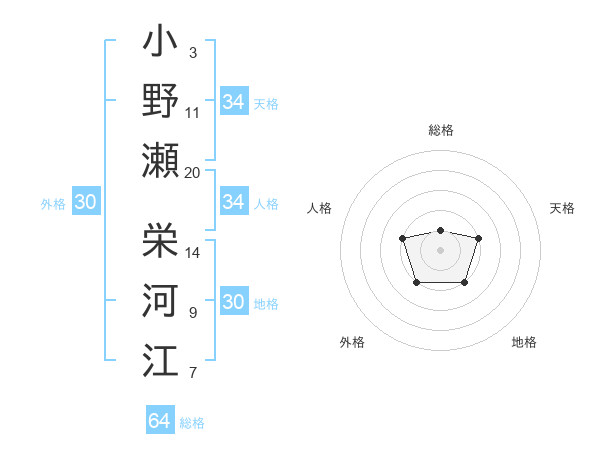 小野瀬 栄河江さんを姓名の画数から五運を鑑定