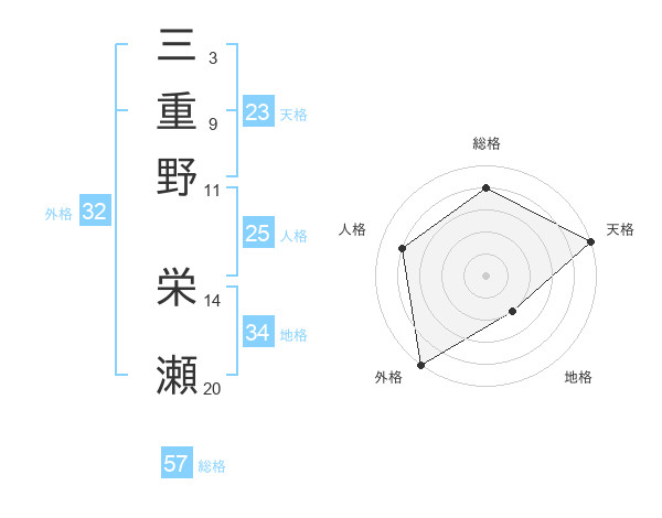三重野 栄瀬さんの総格は57画の4点!