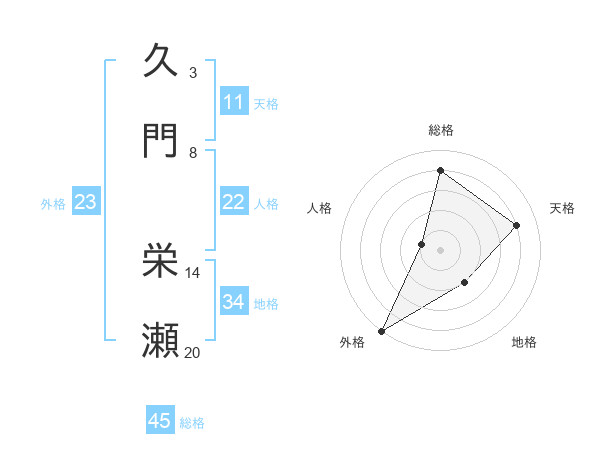 久門 栄瀬さんの総格は45画の4点!