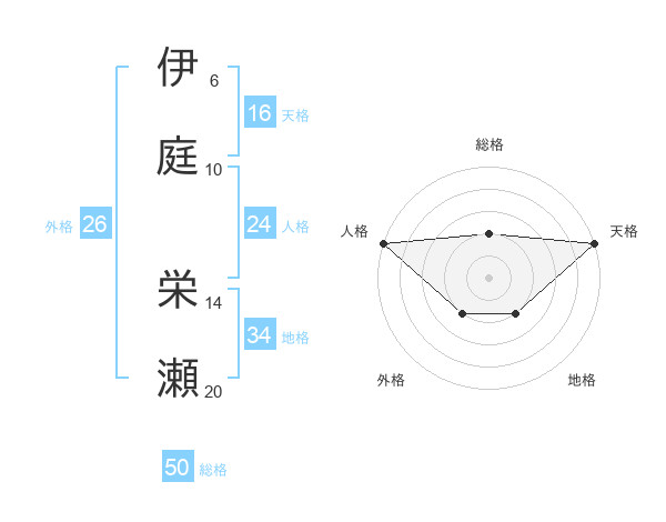 伊庭 栄瀬さんを姓名の画数から五運を鑑定