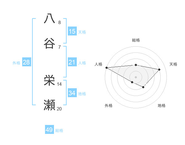 八谷 栄瀬さんの総格は49画の2点!