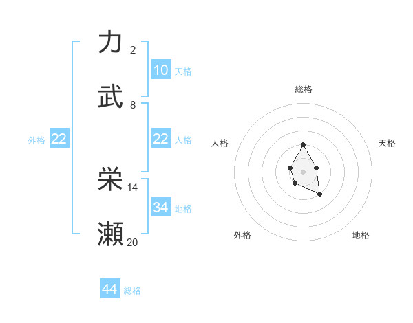 力武 栄瀬さんの総格は44画の2点!