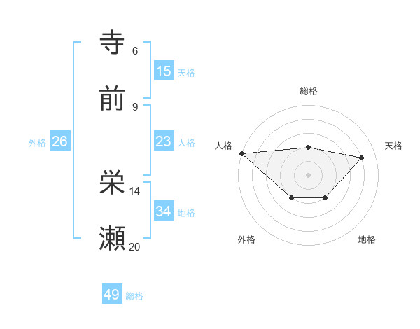 寺前 栄瀬さんの総格は49画の2点!