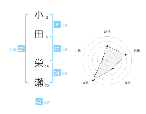 小田 栄瀬さんを姓名の画数から五運を鑑定
