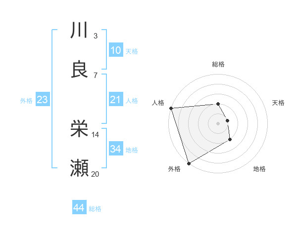 川良 栄瀬さんの総格は44画の2点!