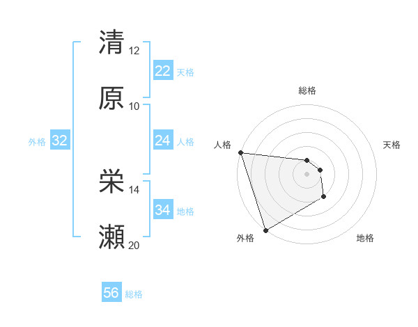 清原 栄瀬さんの総格は56画の1点!
