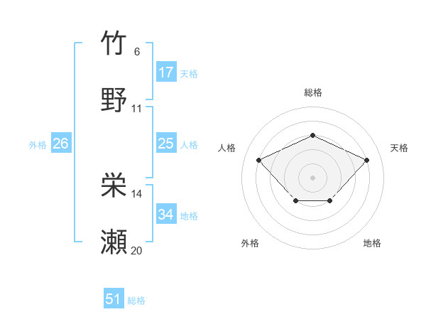 竹野 栄瀬さんの総格は51画の3点!