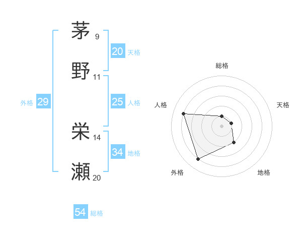 茅野 栄瀬さんの総格は54画の1点!