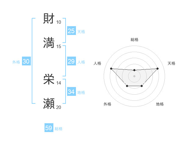 財満 栄瀬さんを姓名の画数から五運を鑑定