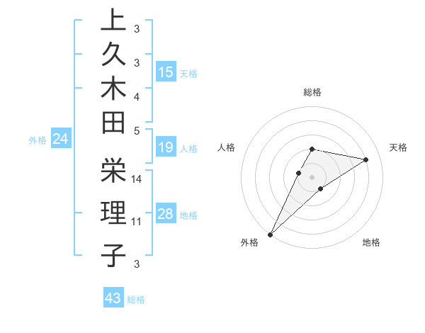 上久木田 栄理子さんを姓名の画数から五運を鑑定