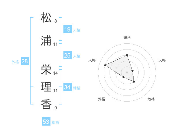 松浦 栄理香さんの総格は53画の3点!