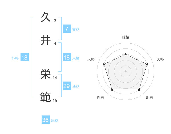 久井 栄範さんの総格は36画の3点!