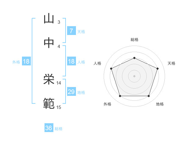 山中 栄範さんの総格は36画の3点!