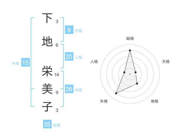 下地 栄美子さんの総格は35画の4点!