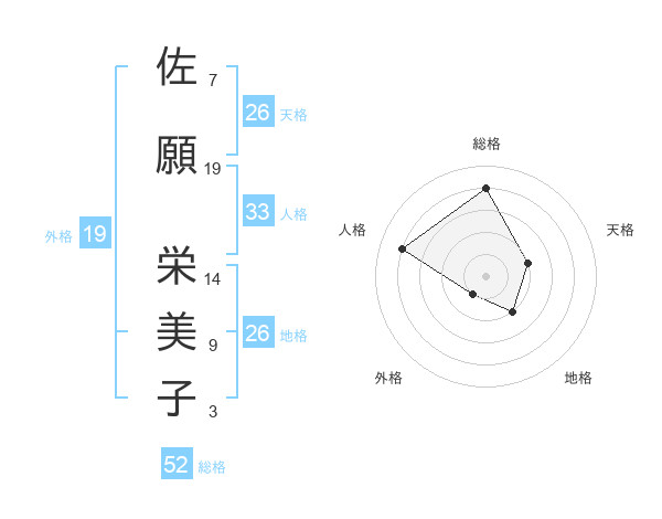 佐願 栄美子さんを姓名の画数から五運を鑑定