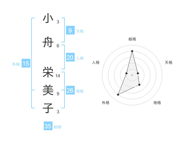小舟 栄美子さんを姓名の画数から五運を鑑定