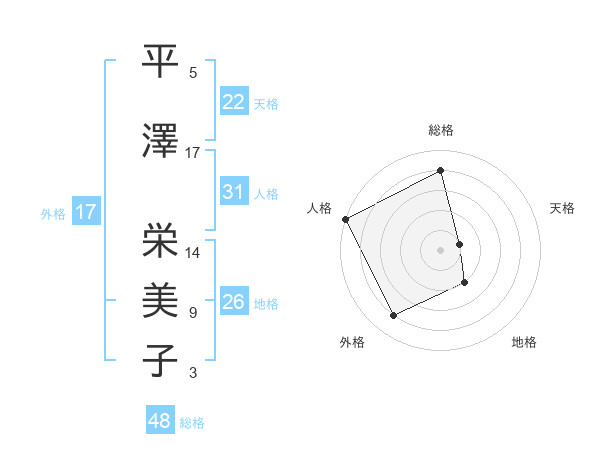 平澤 栄美子さんを姓名の画数から五運を鑑定