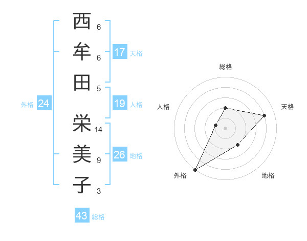 西牟田 栄美子さんの外格は24画の5点!