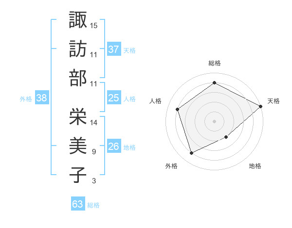 諏訪部 栄美子さんの天格は37画の5点!