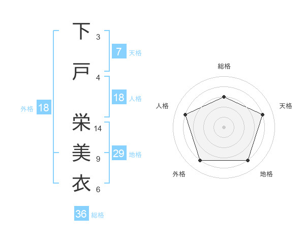 下戸 栄美衣さんの総格は36画の3点!