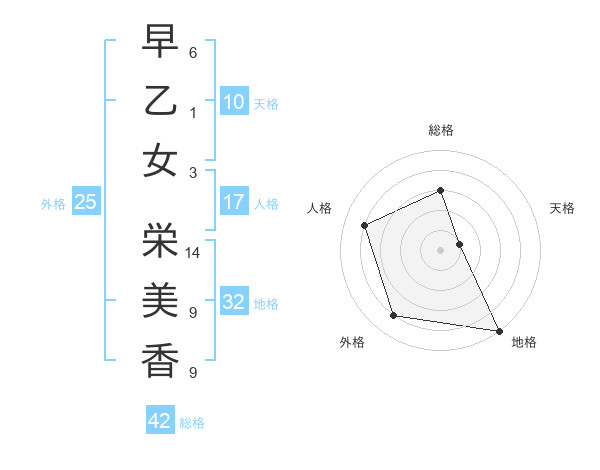 早乙女 栄美香さんの総格は42画の3点!