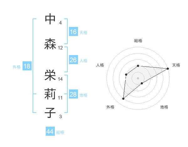 中森 栄莉子さんの天格は16画の5点!