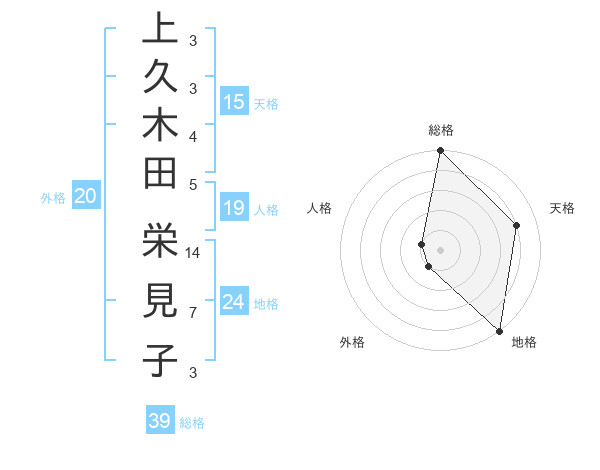 上久木田 栄見子さんを姓名の画数から五運を鑑定