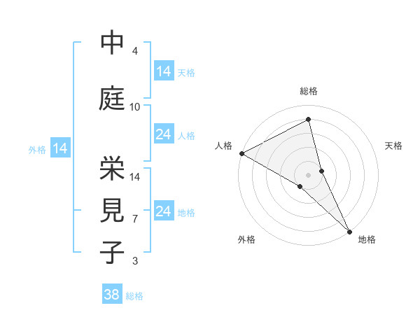 中庭 栄見子さんの総格は38画の4点!