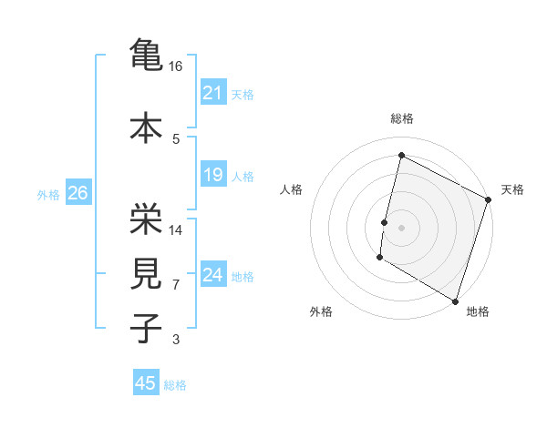 亀本 栄見子さんを姓名の画数から五運を鑑定