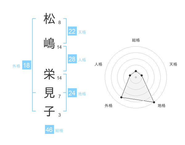 松嶋 栄見子さんの天格は22画の1点!