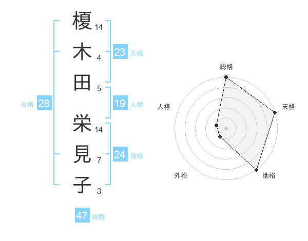 榎木田 栄見子さんの総格は47画の5点!