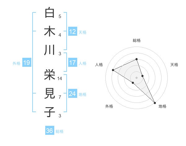 白木川 栄見子さんの総格は36画の3点!