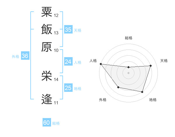 粟飯原 栄逢さんの総格は60画の1点!