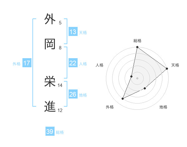 外岡 栄進さんの総格は39画の5点!