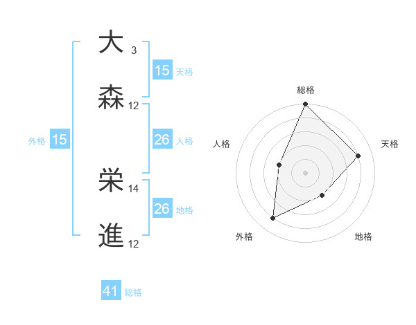 大森 栄進さんの天格は15画の4点!