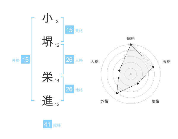 小堺 栄進さんの総格は41画の5点!