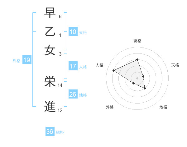 早乙女 栄進さんの総格は36画の3点!