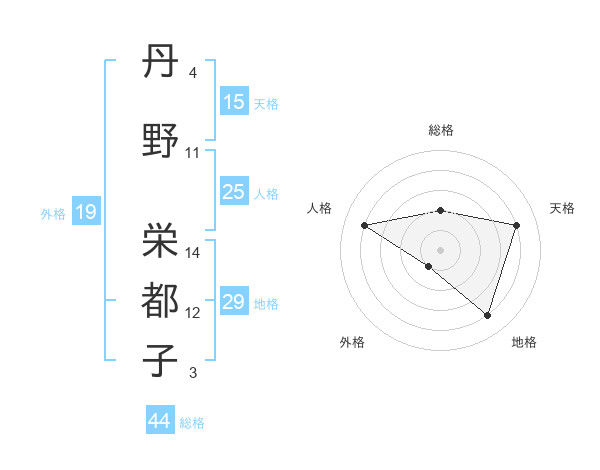 丹野 栄都子さんを姓名の画数から五運を鑑定